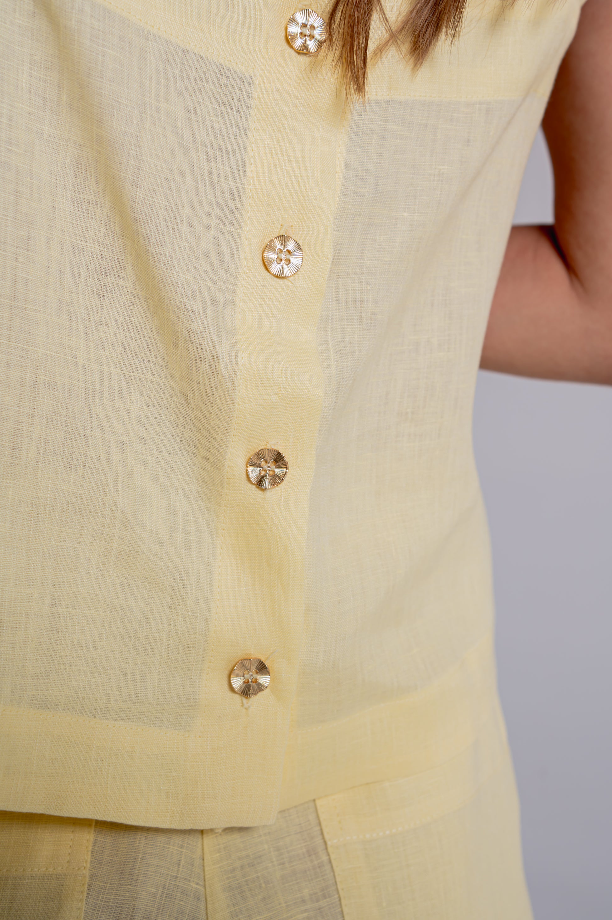 Confeccionada em linho puro, a blusa Amazonas possui corte solto, com nervuras na vertical, decote reto e alças largas e abotoamento nas costas.