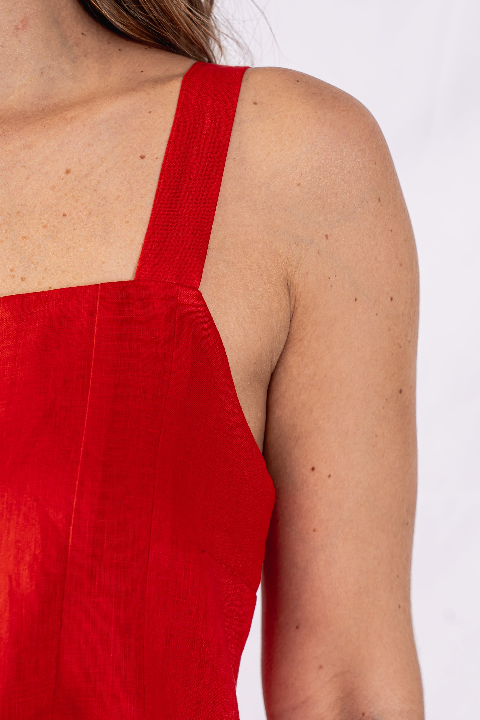 Confeccionada em linho puro, a blusa Amazonas possui corte solto, com nervuras na vertical, decote reto e alças largas e abotoamento nas costas.