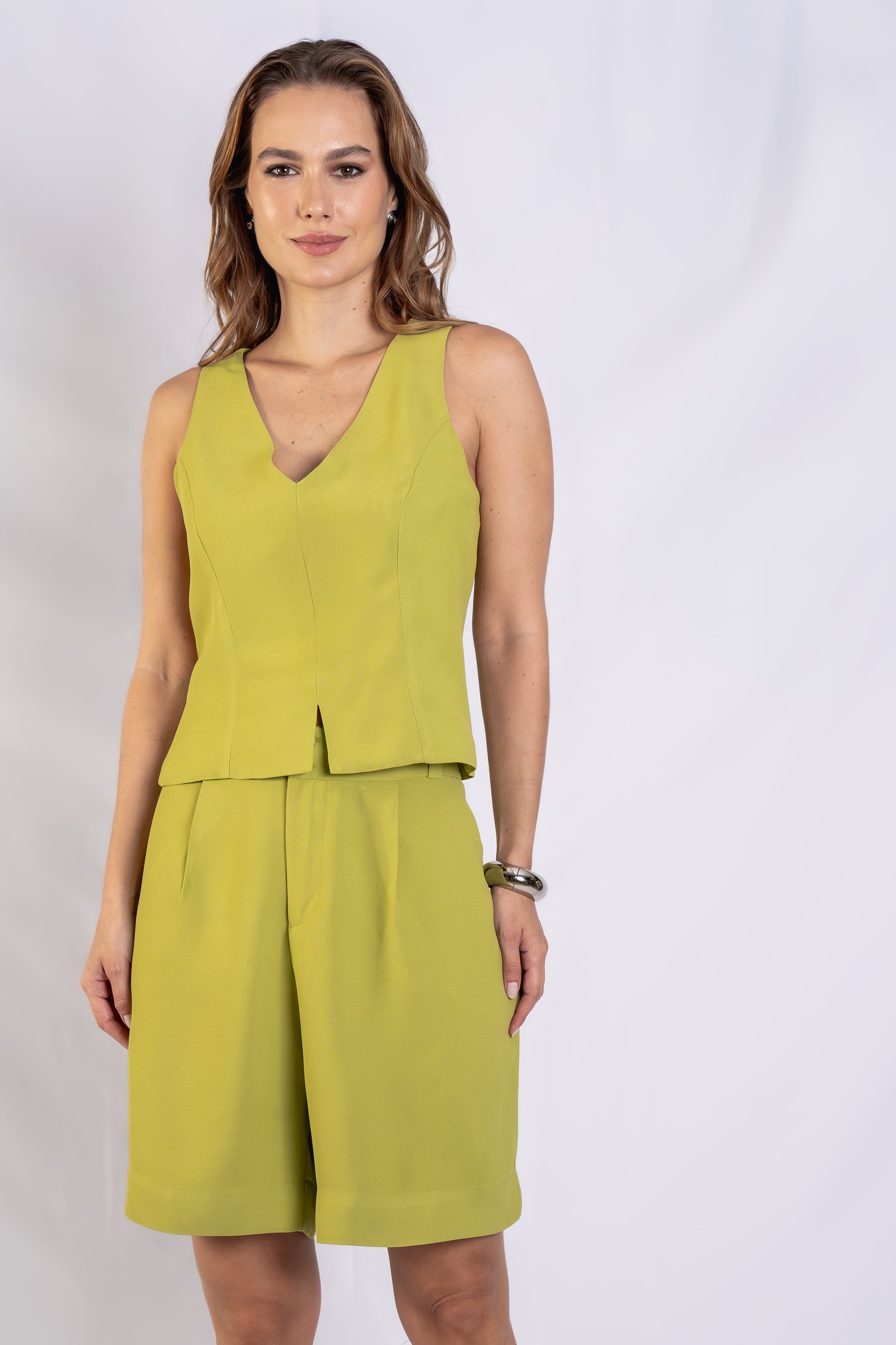 Confeccionada em crepe, a blusa Calabria possui decote em V e fechamento em zíper nas costas.