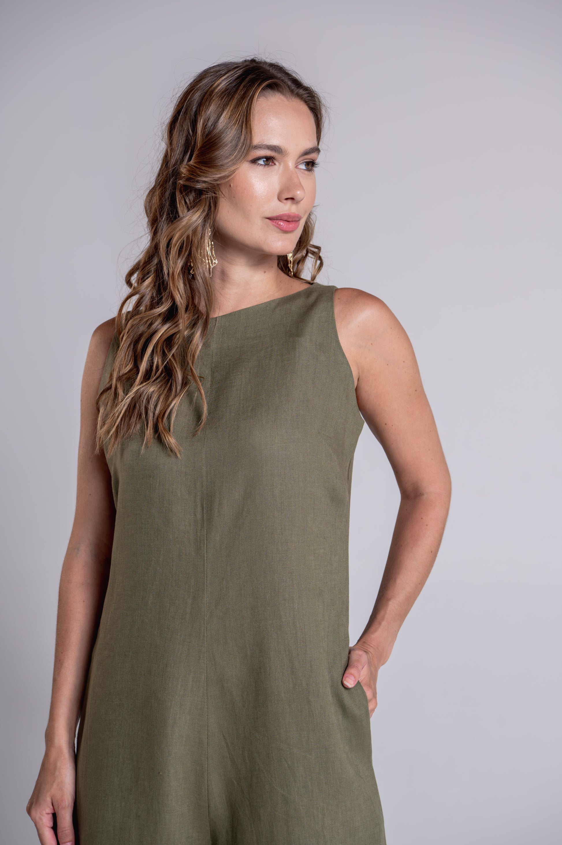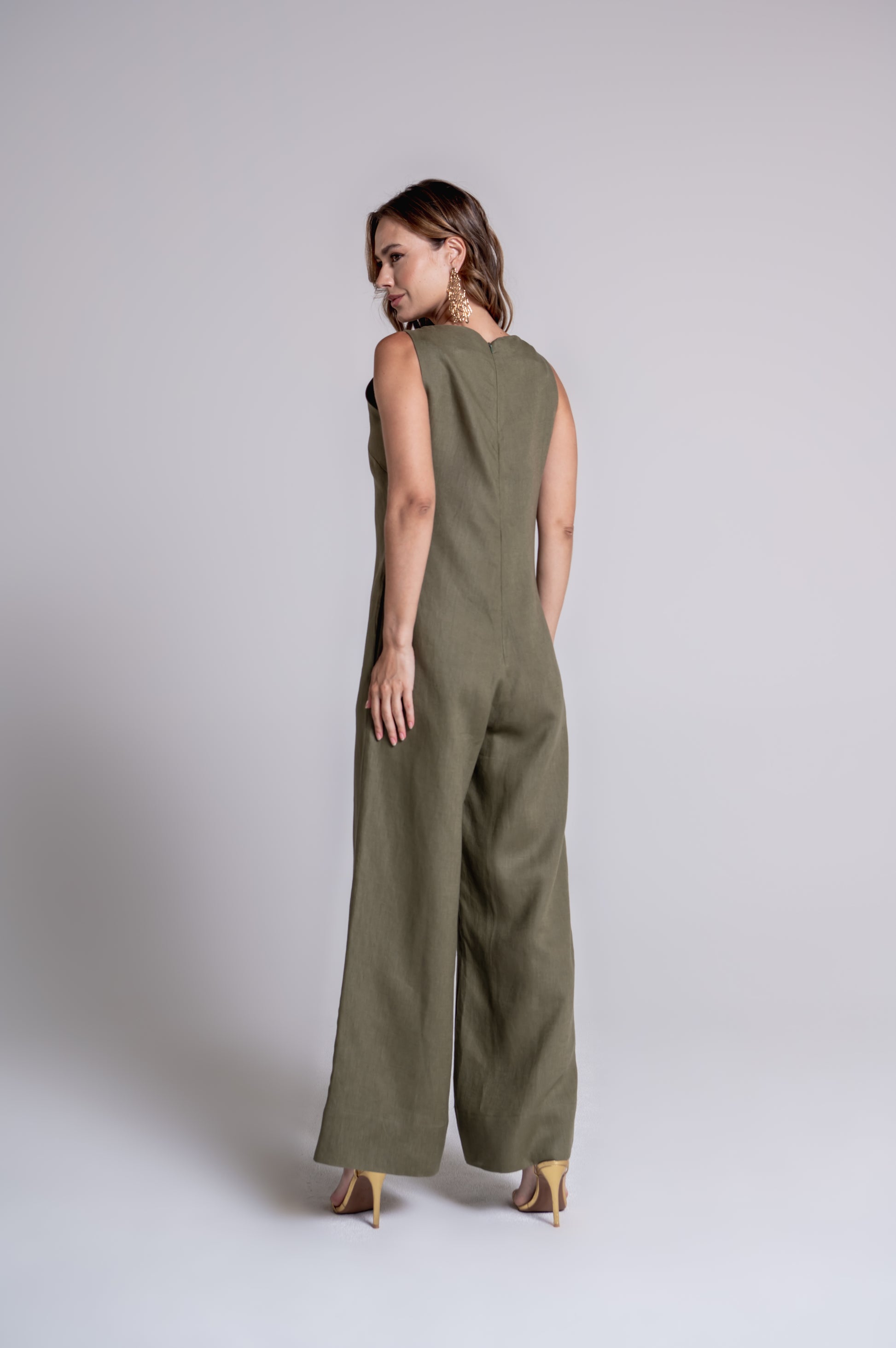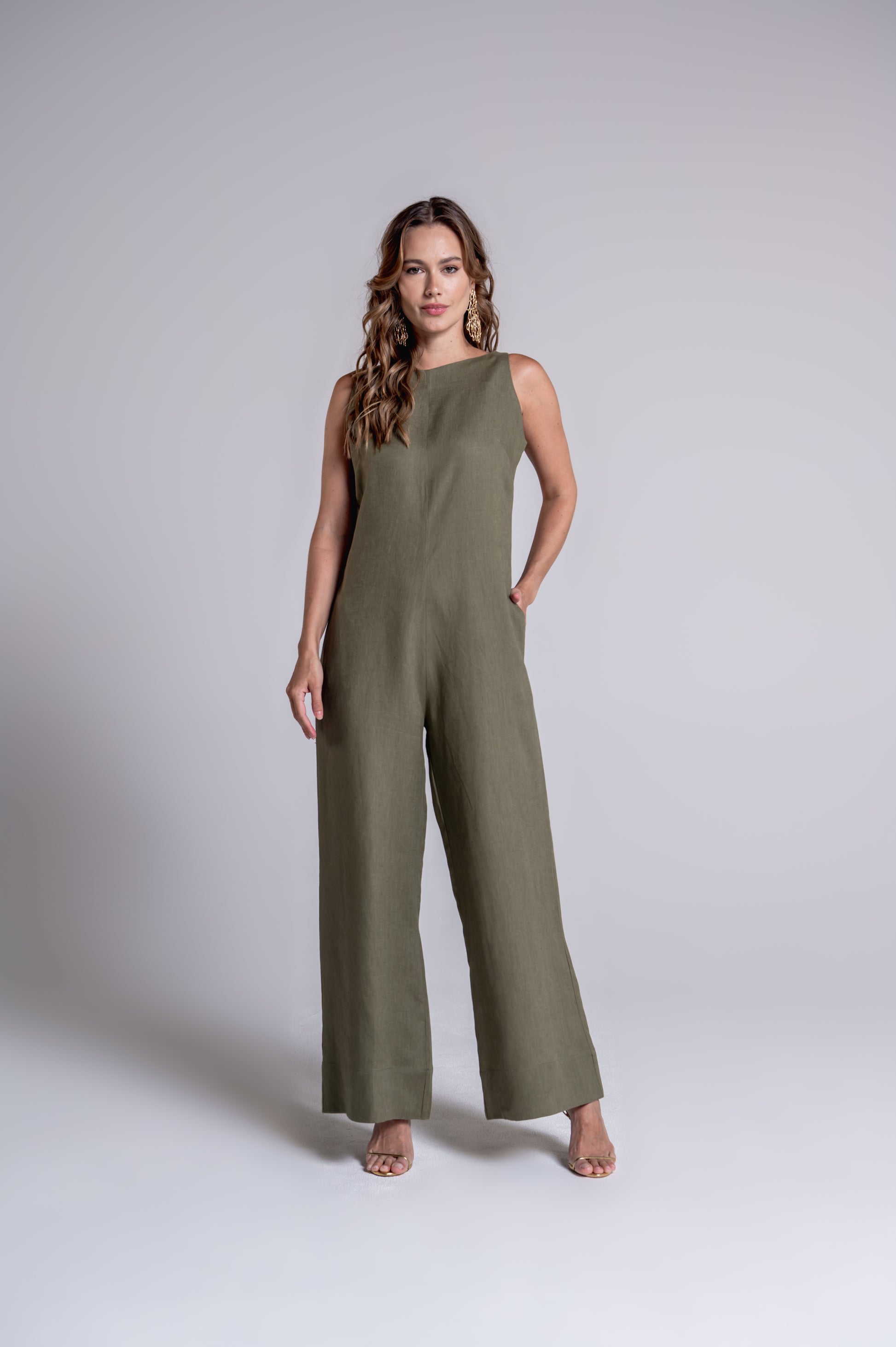 Confeccionado em linho puro, o macacão Mali é elegante e descomplicado. Possui corte reto e modelagem clássica. Seu fechamento é com zíper atrás e possui bolsos laterais.